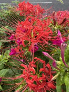 朝夕は秋の虫の合唱と涼しい風を感じられるようになりました。やっと秋の気配です。道端に曼珠沙華が咲いていました。「お彼岸といったらわたしの出番です」という感じで元気よく咲いていました。暑さの季節は通り過ぎても、寒暖差にはご注意ください。当相談室では感染防止対策を引き続きおこなっています。CO2センサーで室内空気を確認しながらの換気の実施、空気清浄機とサーキュレータ、足踏み式消毒液スタンドの設置、面接室・トイレにはプラズマイオン発生機が設置されています。また、電話カウンセリング、インターネットオンラインカウンセリング(Zoom利用)にも対応していますので、ご希望の方はお知らせください。(2025年10月1日更新)